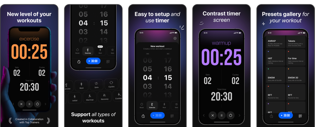 Simplifying exercise routines, it automates intervals for enhanced focus and efficiency. With customizable settings for all fitness levels, including auditory cues and voice support, it ensures seamless workouts.