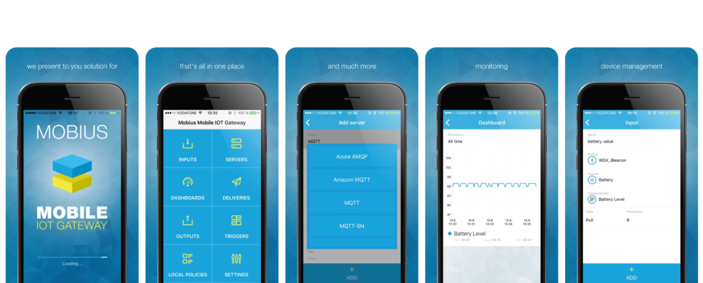 Mobius mobile IoT gateway is an app which allows to exchange the data between Bluetooth devices and the server.