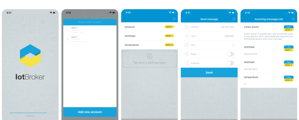 The app supports MQTT 3.1.1, MQTT-SN 1.2, CoAP – RFC 7252, and AMQP 1.0 protocols and provides all protocol features
