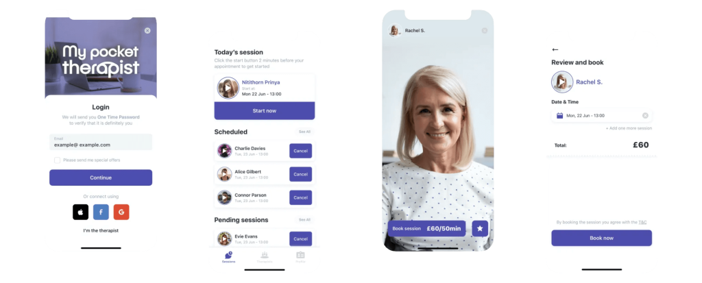 UK citizens who require therapist assistance can use the My Pocket Therapist app developed for the iOS platform to find specialists, view their personal and professional info, book appointments with selected specialists, and have live video sessions.